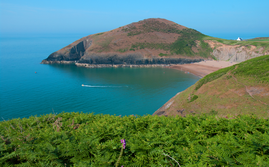 A part of the Welsh coast that we don’t know well is north of St Davids and south of Aberystwyth. Cardigan is a pleasant town, and the surrounding area is stunning. We took our little camper to a field on a farm overlooking the Coast Path, north of Cardigan Island. We had to wait until the field had been cut and the hay baled before we could pitch camp.