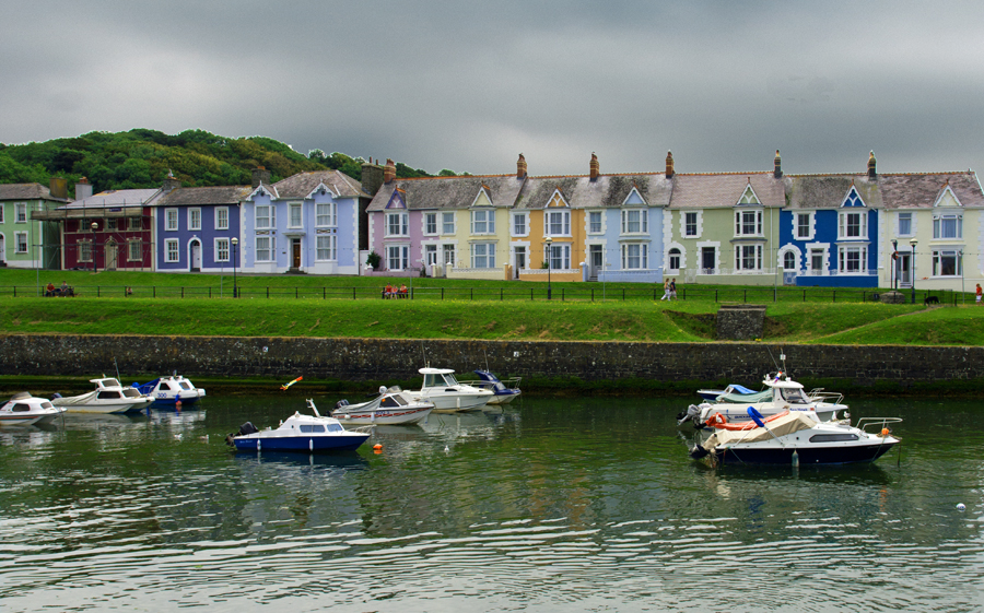 We also visited New Quay, further up the coast. It’s pretty, but horribly over-commercialised. There were a couple of brave restaurants offering expensive moules and chips, but we weren’t tempted. Much nicer is Aberaeron, further north. with its unexpected late-Georgian architecture.