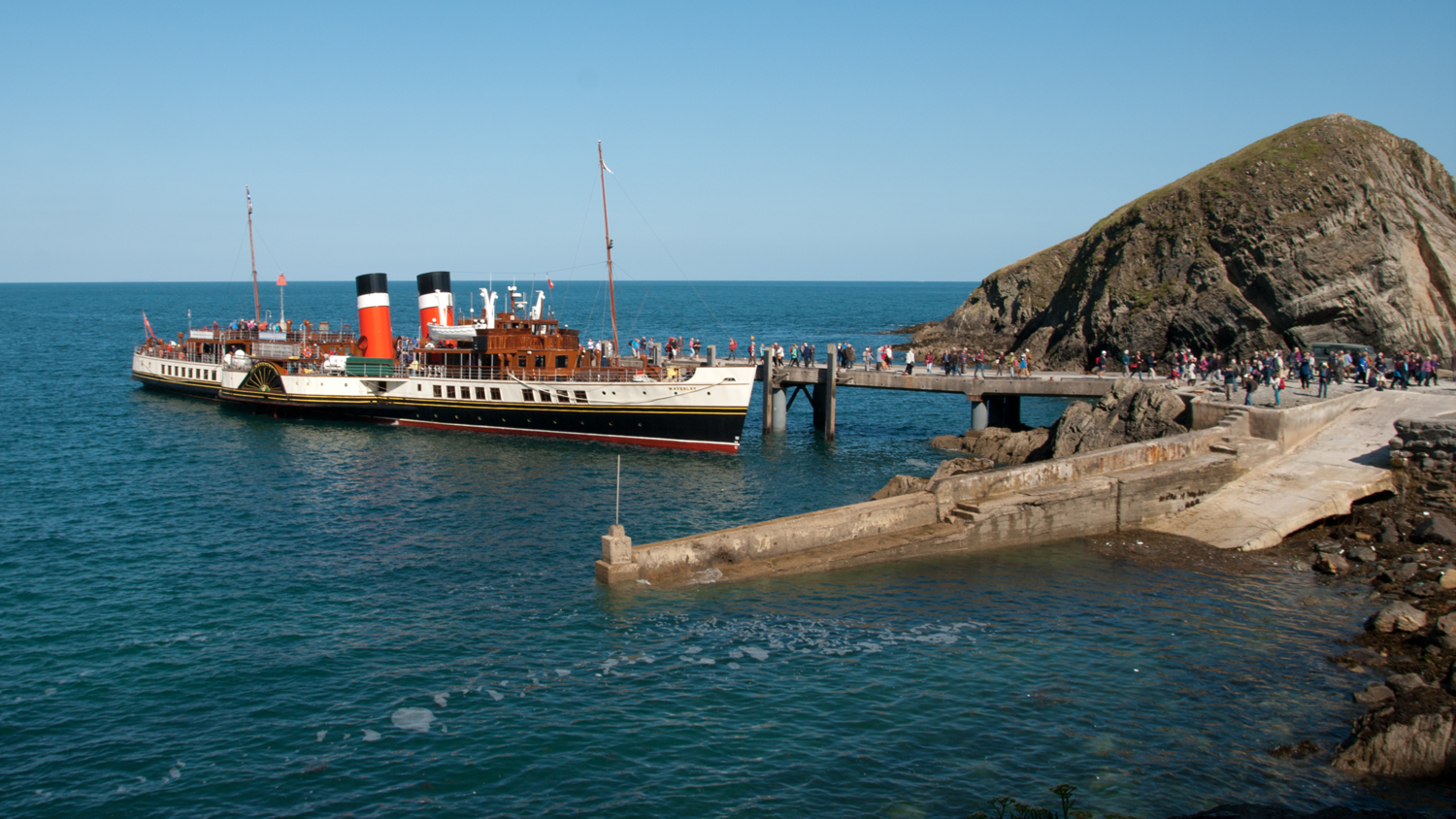 The paddle steamer Waverley – the last ocean-going steamship in the world – left Clevedon Pier at 0815 hours on a perfect morning and took us, via Porthcawl and Ilfracombe, to Lundy Island, where the Bristol Channel becomes the Atlantic Ocean. Great day (bit cold and dark later as we didn’t get back ’till midnight). Great pint of Landmark Ale in the Marrisco Tavern!