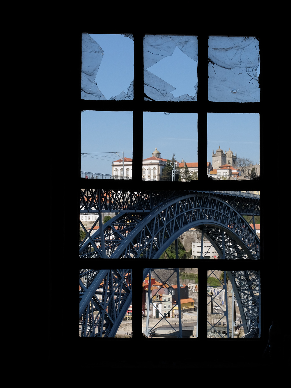 Luis I bridge from derelict window.