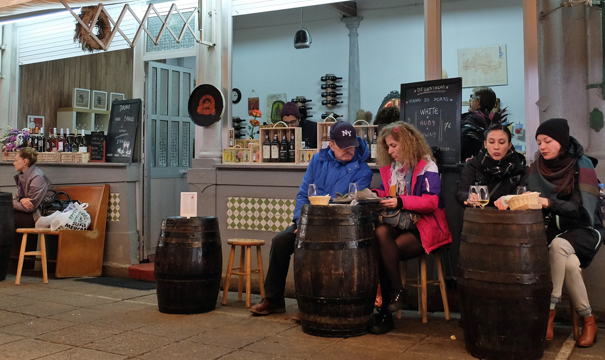 Port tasting in market.
