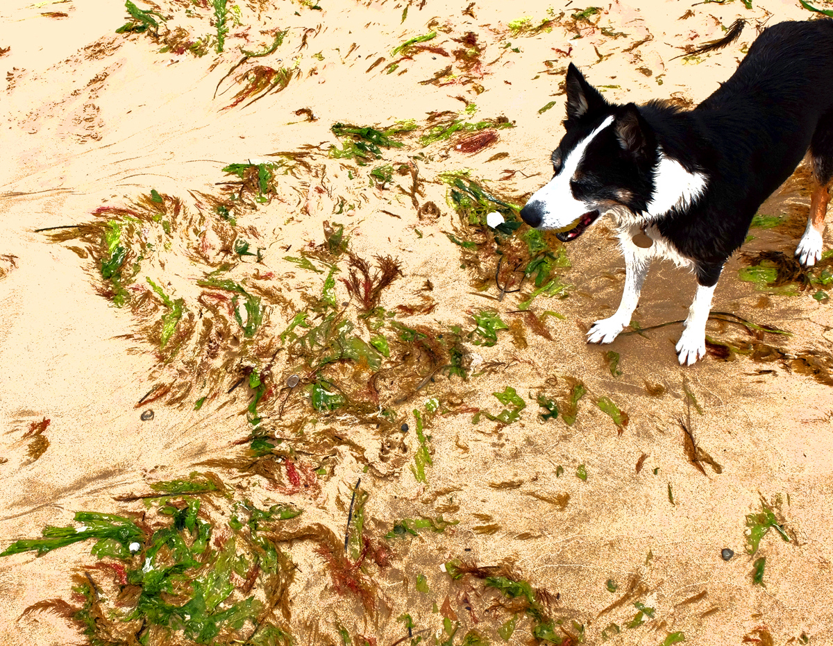 - Seaweed and Lucy on Studland beach.