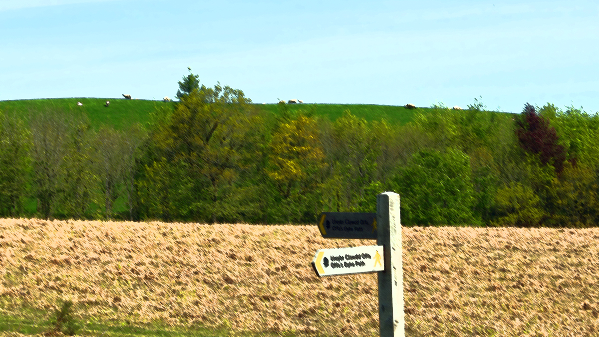 “This section starts off alongside the Wye, last seen at Monmouth, before passing through the rolling territory of the Powys – Herefordshire border. This area is well known for the diaries written by the Victorian country curate Francis Kilvert who wrote about life in the rural parishes with his observations on country life. As a finale to the stage the Trail rises to over 400 metres on Hergest Ridge with dramatic 360 degree views. On a clear day Pen y Fan can be seen to the south, the Malverns to the east and the hills of Shropshire to the north. The summit of Hergest Ridge has an old racecourse which is exactly a mile around. This area was also the inspiration for Arthur Conan Doyle’s Hound of the Baskervilles and Mike Oldfield’s second album Hergest Ridge. The day finishes in the border market town of Kington, a very important livestock town being on the drovers route. [© http://www.nationaltrail.co.uk]“