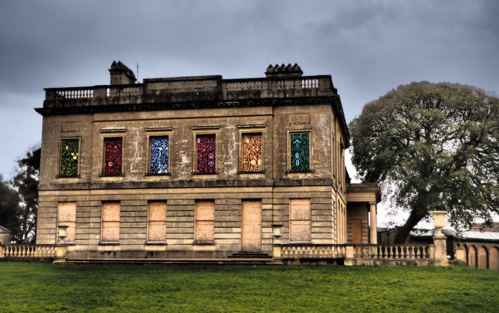 A popular area for woodland walks in North Bristol. The house is usually home to a museum, now closed due to covid. Nephew Rob is currently working on temporary decorative boards (the first installed in upper windows), on behalf of Bristol City Council.