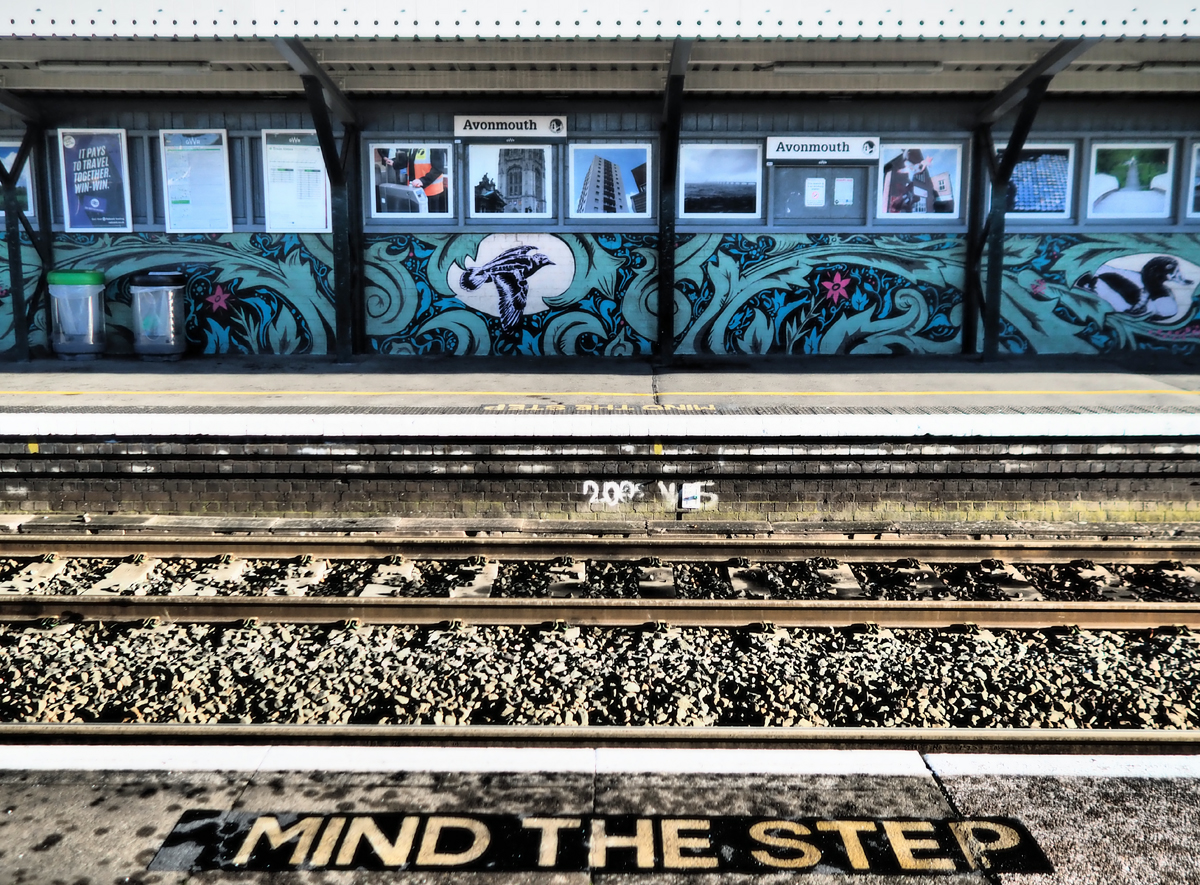 Not a frequent tourist destination, Avonmouth has been, since WWII, a huge, sprawling industrial estate, closely linked with with the docks, which were initially built two hundred years ago to overcome the problems with lager ships getting up the Avon to Bristol’s harbour. We were prompted to visit because Rob and Sophie have been “livening up” Avonmouth railway station with their brand of public mural art.