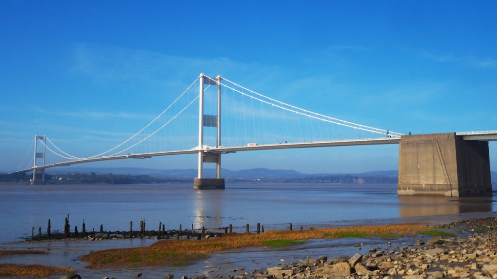 On the east of the river Severn, Aust beach is known for its rich store of fossils, a favourite place for palaeontology students from UWE to sneak off for a cigarette. It is at the east end of the “old” Severn bridge (the M48 mororway), although, before the bridge was built, a ferry ran from here to Beachley (on the other side of the estuary), Nowadays, the most famous thing about the ferry is that Bob Dylan was photographed here on the way to a gig in Cardiff in 1966 (spot the huge power pylon in the background).