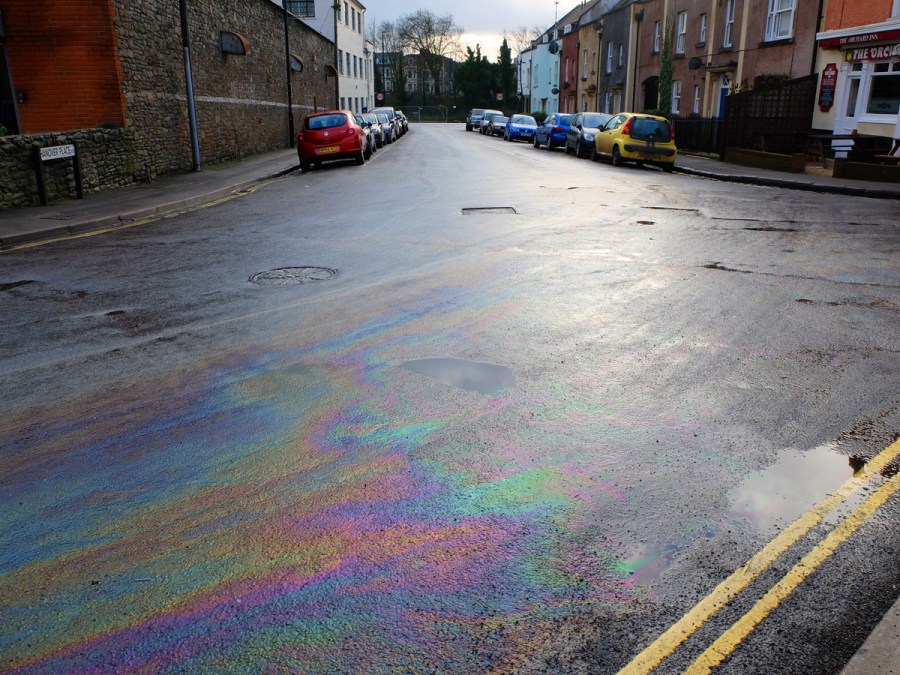 Oil spillage outside The Orchard Inn.